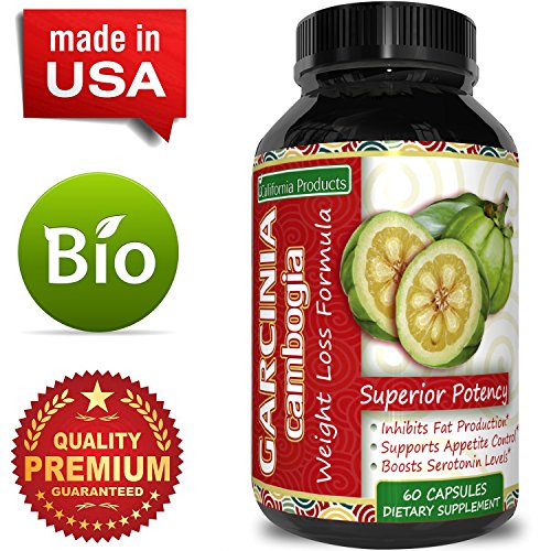The Best Garcinia Cambogia for Weight Loss Garcinia Cambogia works by preventing the creation and storage of fat. In order for this process to work, HCA concentrations must be at least 50%. Many brands cut corners and offer the minimal or weak HCA concentrations just over 50-75 percent. That's not how we operate. Our pure Garcinia Cambogia has HCA concentrations of 95%. This makes it one of the most potent weight loss supplements available. Better Absorption and Utilization Taking a supplement does not guarantee that your body will absorb or utilize it effectively. Knowing this, we infused our Garcinia Cambogia with calcium and potassium which vastly improve its bioefficacy. The overall effectiveness of the product is improved, increasing the potential for greater weight loss in a shorter period of time. All Natural Appetite Suppressant Garcinia Cambogia helps suppress the appetite by increasing the level of serotonin in the body, and by improving satiety. This allows you to feel fuller while consuming less. Our Garcinia Cambogia is formulated in a GMP certified facility. GMP Certified Facility California Products takes consumer product quality seriously. We use only the highest quality, contaminant free facilities, and test all of our ingredients before they are packaged. This allows us to stand behind our product and proudly display the GMP inspection seal on our label. Made in the United States Our Garcinia Cambogia is formulated and packaged in the United States. This helps us meet the highest standards of quality and purity. From sourcing to formulation, California Products utilizes only the best practices to ensure the highest standards of quality and efficacy are met. Our 100% Money Back Guarantee ensures hassle-free returns.Feature