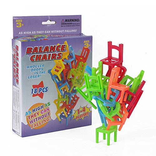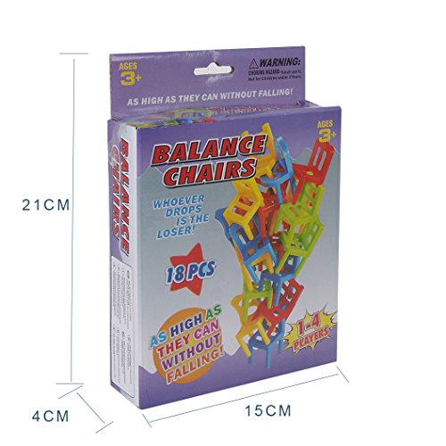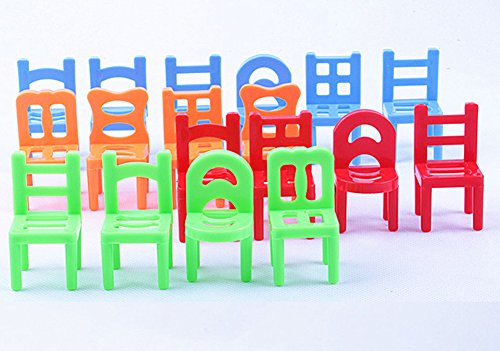 Feature : INTELLIGENCE: Help Trainning hand-eye coordination, balancing, problem solving, memorizing and other important learning skills / FUNNY: There are 18 chairs which have to be stacked in a certain pattern, without falling or dropping in mid-way, so that the pile remains steady and stable / COLORFUL:bright primary colors,red,green,blue and yellow. / So many different ways to stack you'll never have the same game twice. Could somewhat lower difficulty, with other hand help hold nethermost bottom stool / Great game for all ages and is designed to entertain and stimulate the mind. Recommended for children 3-years of age and oldermended for children 3-years of age and older