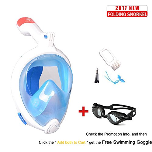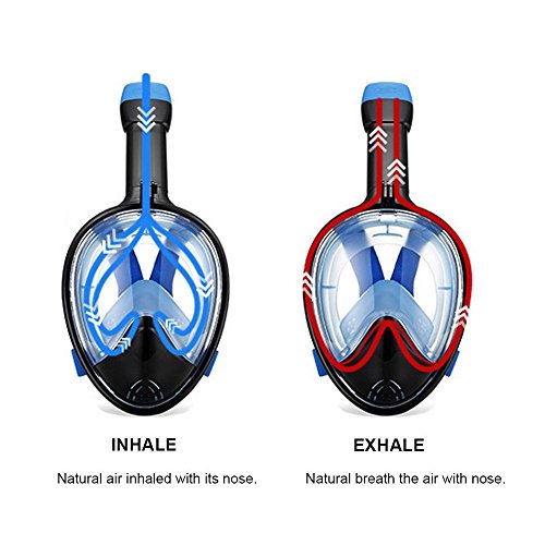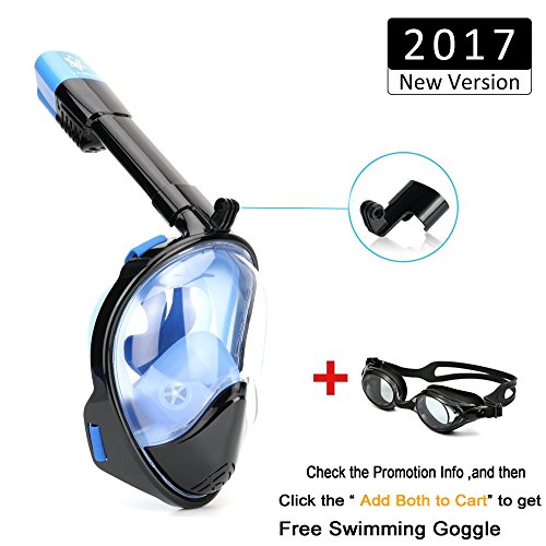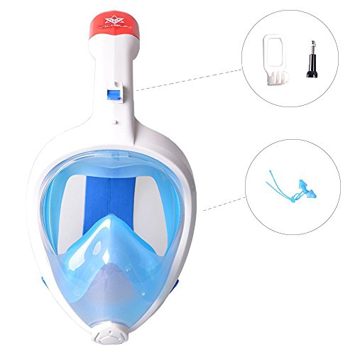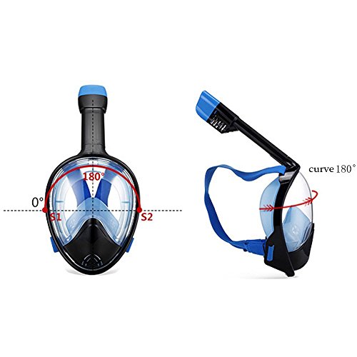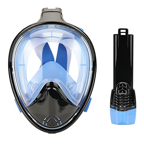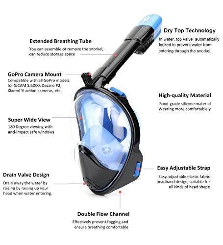 VILISUN Full Face Snorkel Mask,180° Large View Underwater Diving Mask,Dry Top Snorkeling Tube and Detachable GoPro Mount,Breathe Freely Anti Fog Anti Leak Design For Adults And Youth (K-Blue, L/XL)