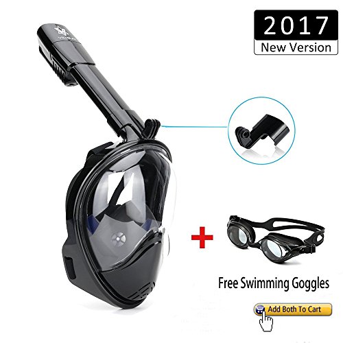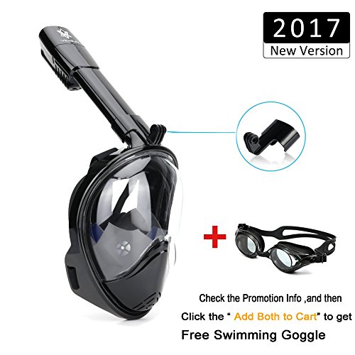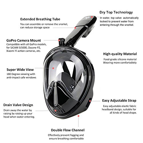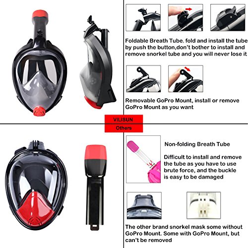 VILISUN 180 Degree Full Face Snorkeling Mask for Adult, GoPro Compatible(Black, L/XL)