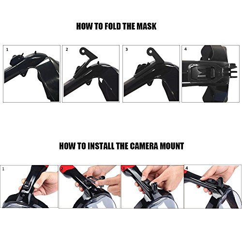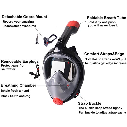 VILISUN 180 Degree Full Face Snorkeling Mask for Adult, GoPro Compatible (Black, S/M)
