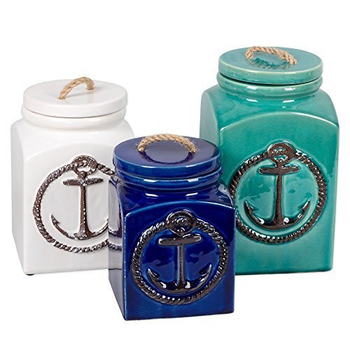 3 PIECE CERAMIC NAUTICAL ANCHOR SQUARE CANISTER SET