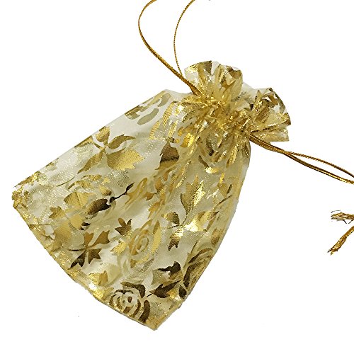 Ecago 100pcs Rose Organza Gift Bags Wedding Christmas Favor 9x12CM (Gold) S071