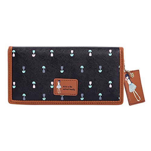Jastore® Elegant Girl Women Clutch Wallet Long Purse Zip Bag Card Holder (Black)