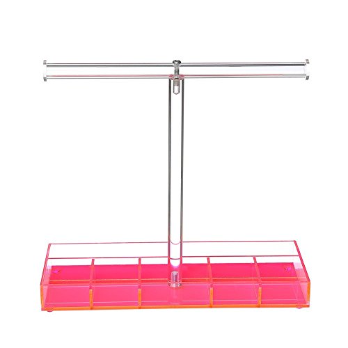Mooca Pink Acrylic T-Bar Tall Tabletop Necklace Holder | Jewelry Display Stand Tree with Ring Tray to Organize Necklaces, Bracelets, Earrings, Rings