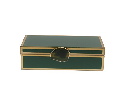 Deco 79 35733 Rectangular Wood and Glass Agate Jewelry Box, Darkgreen/Gold