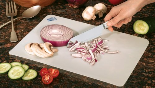 - The flexible plastic is rugged enough to handle your slicing and dicing chores yet bends to funnel into serving dishes or pans.