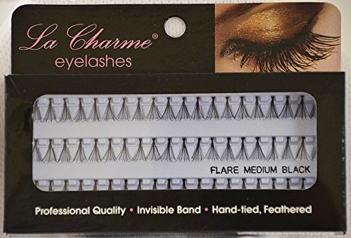 -. Binding : Misc. -. Brand : la charme -. Color : Black -. EAN : 0020504046663 -. Feature : Highest Quality false eyelashes / Preferred by professionals both in the US and Internationally / Easy to apply and remove, reusable with proper care / Best selling eyelash on the market / Adhesive not included -. IsAdultProduct : 0 -. Label : Garland Beauty -. Manufacturer : Garland Beauty -. PackageQuantity : 6 -. ProductGroup : Beauty -. ProductTypeName : BEAUTY -. Publisher : Garland Beauty -. Size : ONLY SIZE -. Studio : Garland Beauty -. Title : La Charme Flare Medium False Eyelash (Pack Of 6) -. UPC : 020504046663