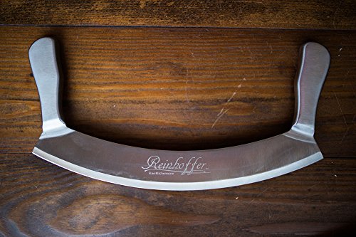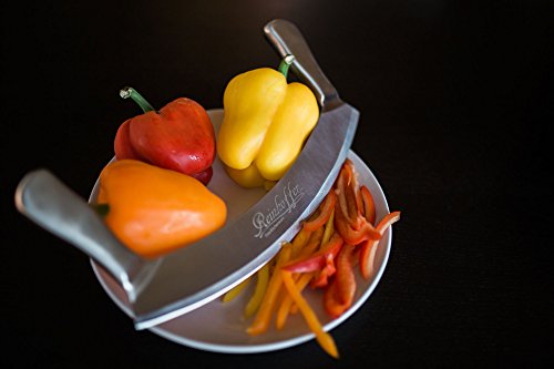 Mezzaluna Knife & Pizza Cutter Rocker - 12 Inch (30.5 cm) Stainless Steel Double Handle Crescent Chopper Blade - Vegetable, Salad & Herb Mincer, Slicer, & Dicer - Premium Quality Kitchen Tool