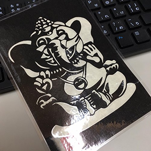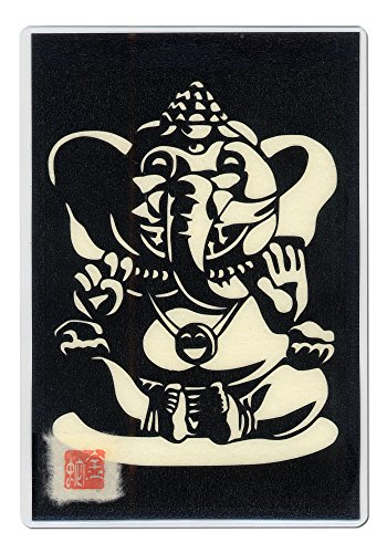 Cutout picture Japanese art collage KIRIE “Elephant God who makes dreams a reality · Ganesh” Hindu god of wisdom or prophecy Made by Washi(Japanese paper) Basic color, 4” x 6”