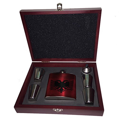 -. Title : Albanian Flag - Flask Wood Box Gift Set