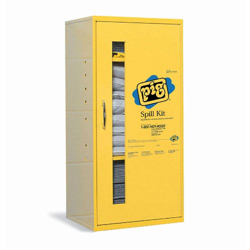 -. Feature : Safety-yellow, heavy-gauge, welded steel cabinet is P.R.Inted "Spill Kit" for quick identification / Pig Mat and Pillows absorb; wipers clean surfaces and hands / Prepacked cabinet provides easy access to contents / See-through front panel lets you easily check inventory levels / Includes write-on label for emergency contact info