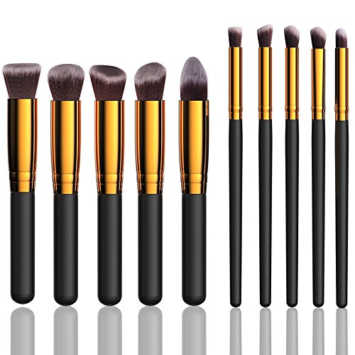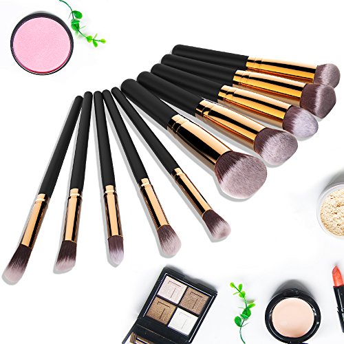 Makeup Brushes Set Premium 10 Pcs Synthetic Brush Foundation Brush Powder Brush Concealers Brush eyeshadow brushes set Black Makeup Brush Sets...