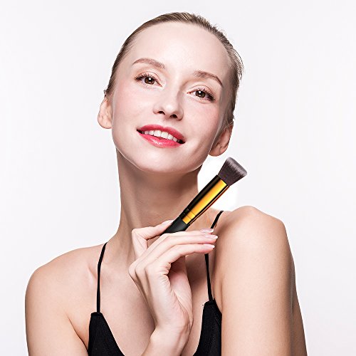 【Pewmium Synthetic Makerup Brushes】Made with soft Cruelty-Free Synthetic and Dense synthetic fibers no skin hurting,suitable for even the most sensitive skin, to provide a high definition finish with liquid, powders or cream foundation without any absorption of product and no shedding.