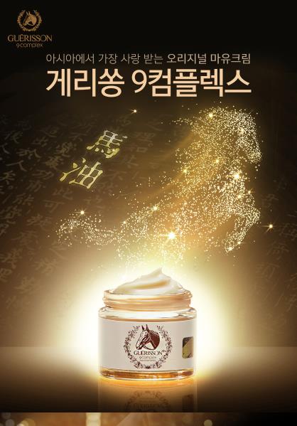 •Guerisson 9Complex Cream contains horse oil helping improve damaged skin and the same item in on sale at pharmacy.