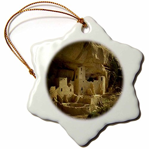 3dRose LLC orn_26293_1 Mesa Verde Under Cliff National Park Cortez Snowflake Porcelain Hanging Ornament, 3-Inch