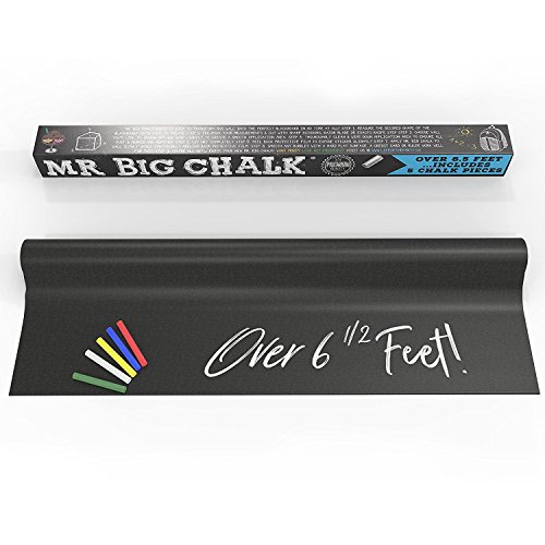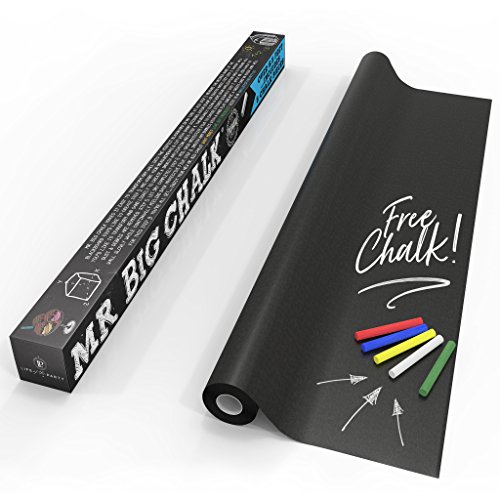 The world is your chalkboard with Life of the Party's Mr. Big Chalk blackboard wall decal roll. Get creative or get organized by transforming any surface into a writing surface...Turn fridge doors or kitchen walls into grocery lists, to-do lists, calendars or family message boards. Add to a child's room or playroom and you can encourage little ones to write on the walls! Stick onto a mirror or picture frame for a beautifully, one-of-a-kind chalkboard. The options are endless.