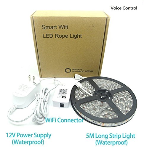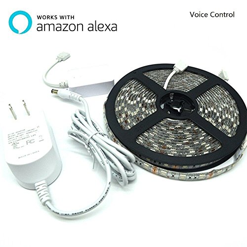 Smart LED Strip Lights Flexible Work with Alexa Echo Dot WiFi Control No Hub Required Dimmable RGB+White Strip Timer Waterproof 16.4Ft/5M 300 LEDs