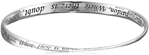 The prayer of St. Francis is inscribed along both sides of this unique twist bangle bracelet, crafted in shiny sterling silver. This slim bangle makes a beautiful inspirational gift.