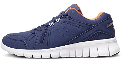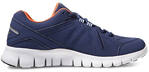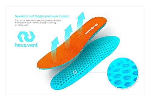 Cross-Trainer hybrid-style shoe designed for all sports activities. Smooth top(Specialized dual structure ) Unique dual structure offers incredible breathability and quick drying properties. Dual vent mesh construction for dynamic mobility. Synthetic Skin Suede High-quality synthetic skin suede increases durability and resists becoming saturated. Flex groove (Flexible movement- flex groove sole) Flex groove sole with hydro-grip outsole provides excellent traction and stability for all surfaces and terrains. Multi-directional flexible groove and cushioned insole for balance and stabililty. Dura glide (Excellent durability EVA midsole) Optimal formulation of thermoplastic polymer with advanced technology for less stiffness and a more sturdy EVA midsole. Hexavent Insole Premium Hexavent insoles for all-day comfort, ideal for all activites. 0