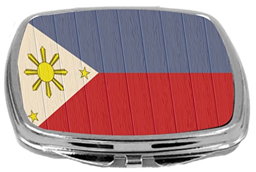 Rikki Knight Compact Mirror on Distressed Wood Design, Philippines Flag, 3 Ounce