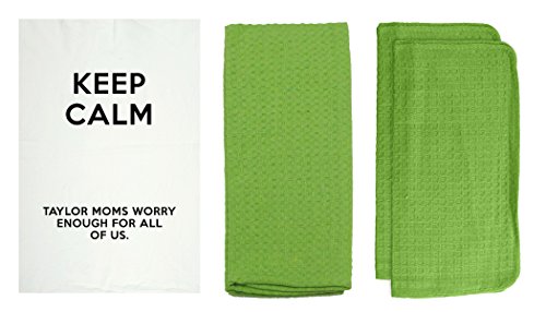R&R Textile Mills 8 Piece Personalized Keep Calm, Moms' Worry Kitchen Towel Set, Lime