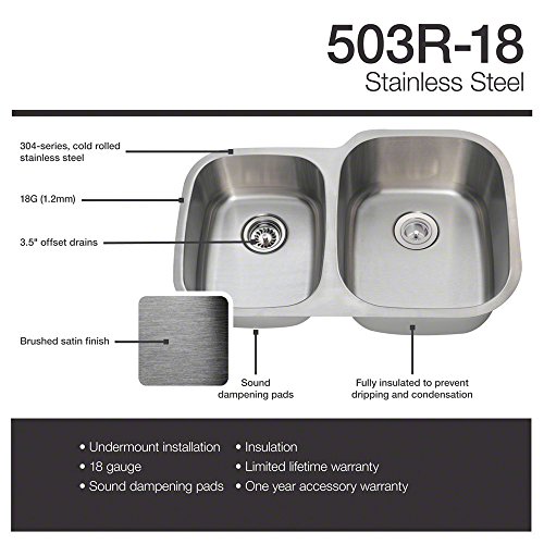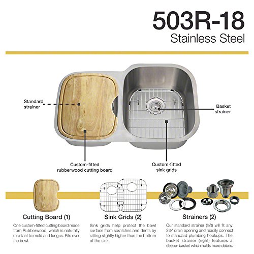 503R 18 Gauge Stainless Steel Kitchen Ensemble (Bundle - 6 Items: Sink, Basket Strainer, Standard Strainer, 2 Sink Grids, and Cutting Board)…