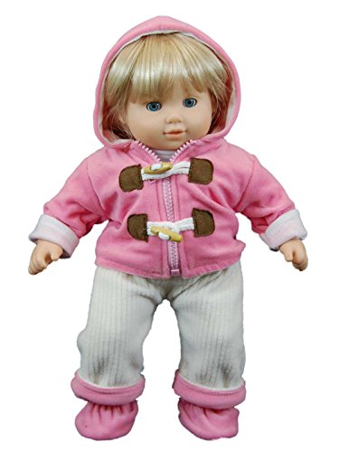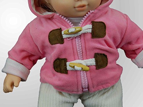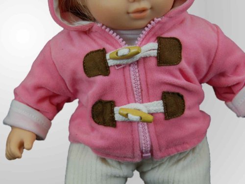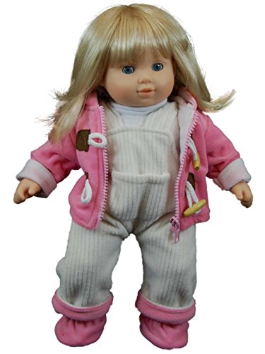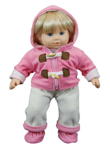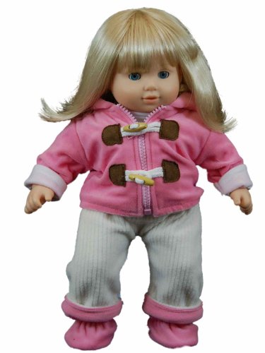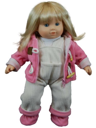 Studio : The Queen's Treasures Publisher : The Queen's Treasures Binding : Toy Product Description Adorably comfy and cozy is the best way to describe this complete outfit for 15" Bitty Baby dolls is a soft pink and beige. Wonderful combination of corded fleece overalls, white jersey knit long sleeve tee, soft pink jersey knit and fleece hooded jacket. Detailing includes rolled-up pants legs on the overalls. Jacket features wooden toggle style button closure. 0
