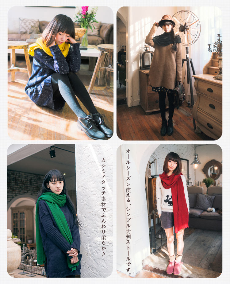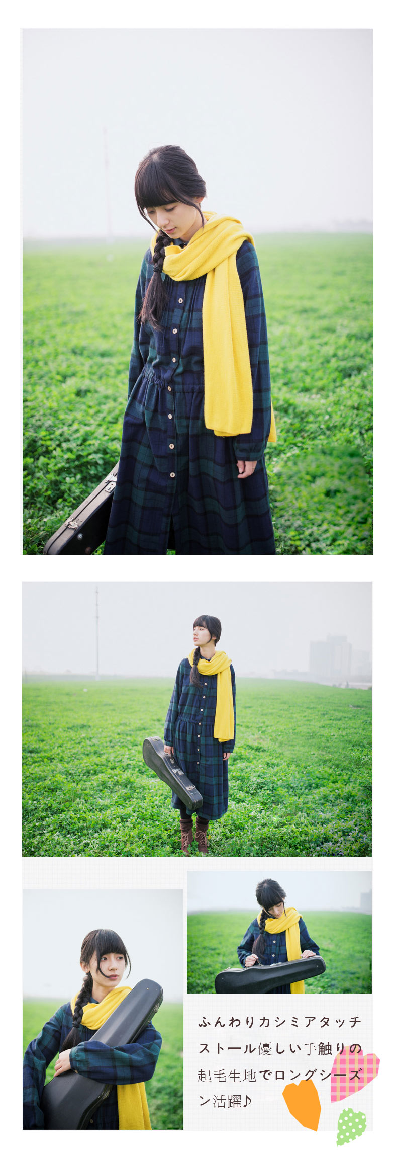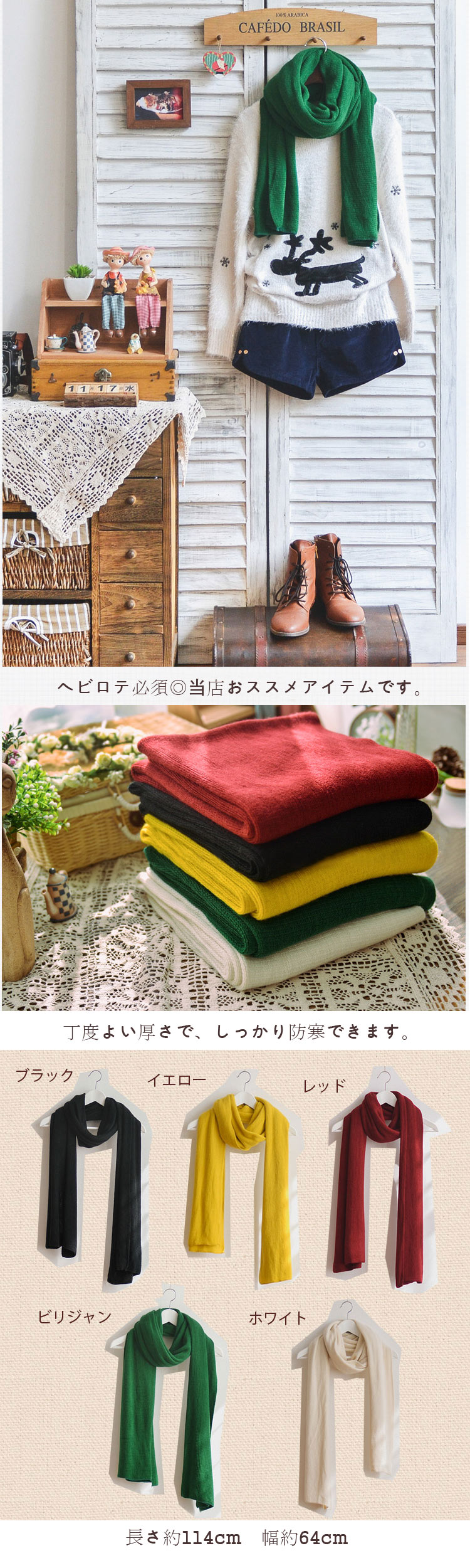 | 地味になりがちな秋冬だからこそ、コーデに添えたい鮮やかなカラーがどどんと5色追加!お気に入りのカラーが見つからないはずがない!というほど、幅広くお色を取り揃えた自慢のストールです。程よい厚みと少し起毛した質感の生地で、寒さ対策から季節の変わり目まで幅広く活躍。優しい肌触りも自慢です。十分な幅と長さがあり、ぐるぐるっとボリューミーに首に巻くのはもちろん、肩に掛けてエレガントにショール使いもオススメ。 | |