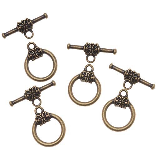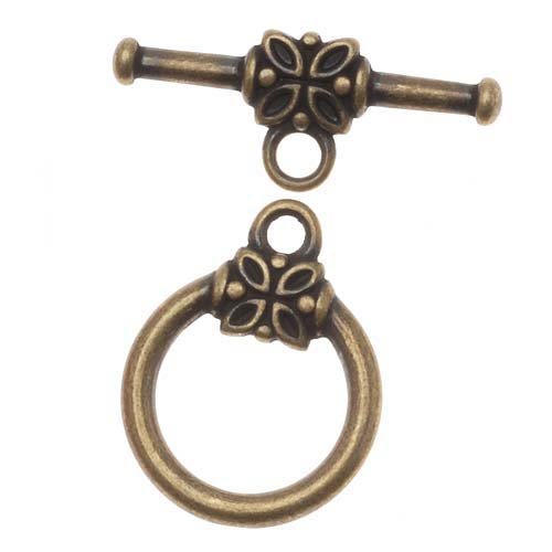Beadaholique Flower Toggle Clasps, 14mm, Antiqued Brass, Set of 4