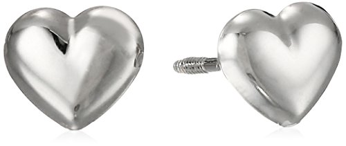 Heart-shape button stud earrings in polished 14k white Duragold with secure screw backing