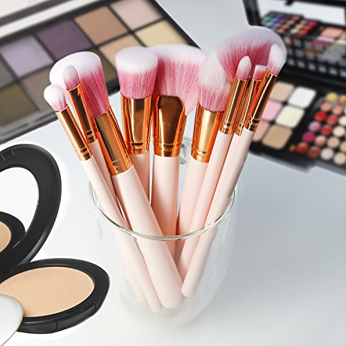 Yedda Makeup Brush Set , 10+1 Professional Makeup Brushes Set Synthetic Fan Powder Concealer Eye Shadow Nose Eyebrow Brush Makeup Brush (Pink )