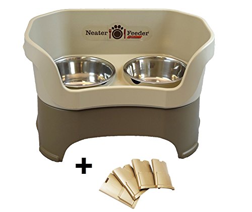 Studio : Neater Pet Brands Publisher : Neater Pet Brands Binding : Misc. Product Description Created for taller dogs weighing 30-100 lbs. with a 20" shoulder height. Includes a set of leg extensions, one 7 cup standard stainless steel food bowl, one 9 cup extra capacity stainless steel water bowl, and a set of non-skid rubber pads. Dimensions: 21L x 13W x 17.5H. Feeding Height: 8 inches without leg extensions or 11 inches with leg extenions 0