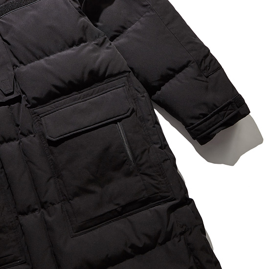 - 밀리터리에서 가져온 전면의 포켓이 디자인 포인트인 숏 다운코트.