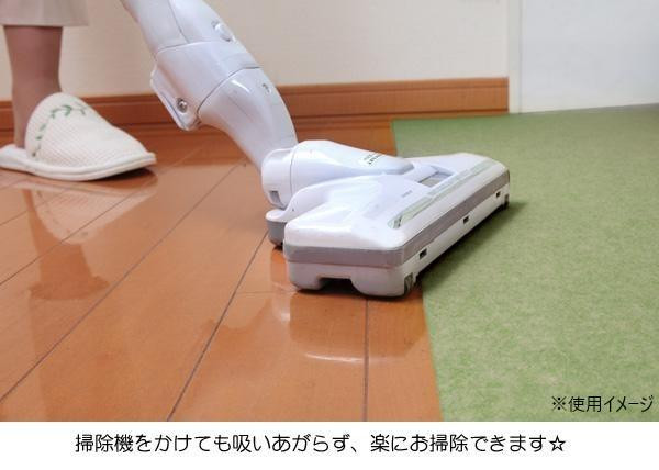 | キッチンを広くカバーできるロングタイプのキッチンマットです。生地の厚みはわずか3mm。つまずきにくく、扉の開閉の妨げにもなりません。お洗濯もできるので清潔にお使い頂けます♪床暖房・ホットカーペットにも対応(上限温度:100度)しています! |