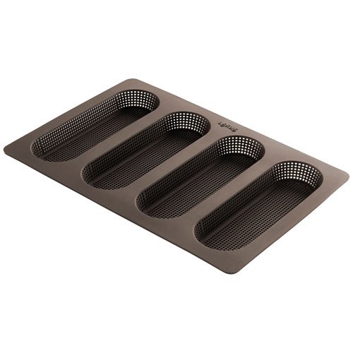 Lekue 4 Cavity Micro Perforated Mini Baguette Baking Pan, Brown