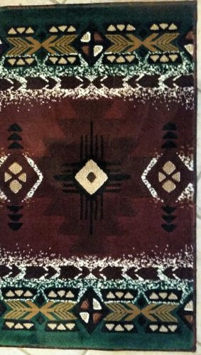 Southwest area rug will add to any home or office decor.May be cleaned with soap and water or mild detergent. May also be steam cleaned. Lays flat on any surface.Blue,brown and beige to compliment any room or decor in your home.Feature