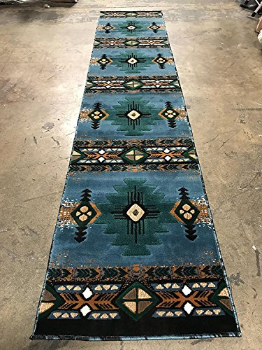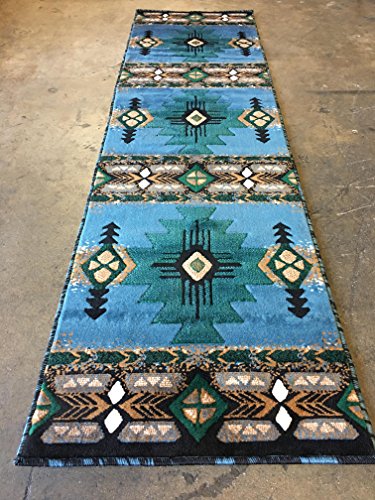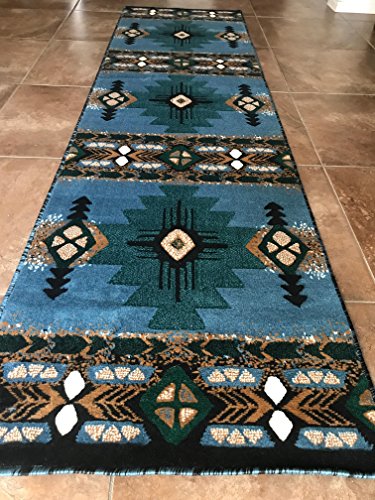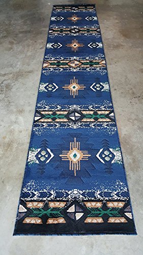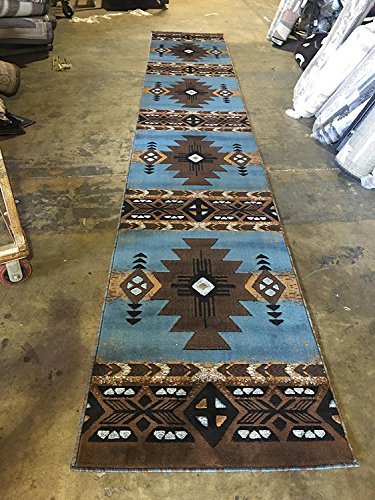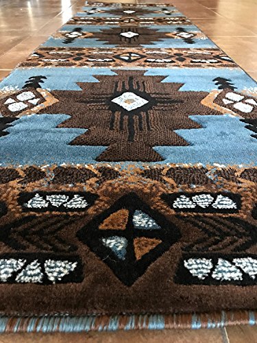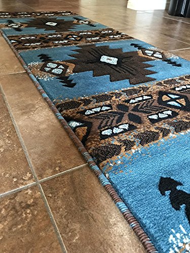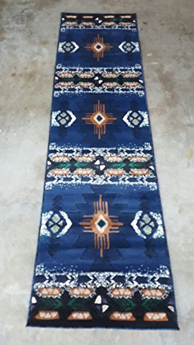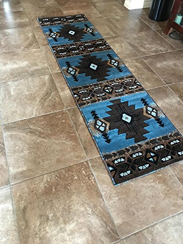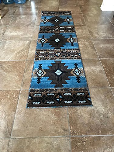 Southwest Runner Native American Area Rug Blue &Brown(2 feet X7 feet 2 inches.)