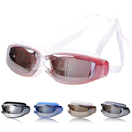 -. Feature : Swimming Goggles with Super ANTI-FOG coating treatment and UV protection. 100% PVC and latex free. / SOFT COMFORTABLE LEAKPROOF silicone gasket and DOUBLE BAND strap with secure position lock buckle. / Shatter resistant and ANTI-SCRATCH reflective MIRRORED ultra durable PC lenses to minimize glare with a 180 degrees distortion-free visibility. / Swim Goggles Best for triathlons, open water swims and other swimming recreational outdoor activities. / 100% MONEY BACK & LIFETIME WARRANTY, NO HASSLE returns!