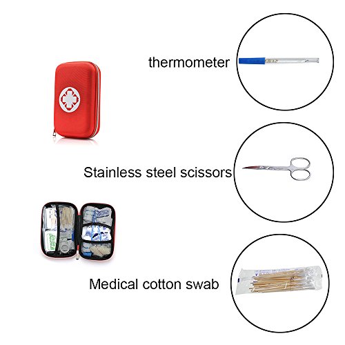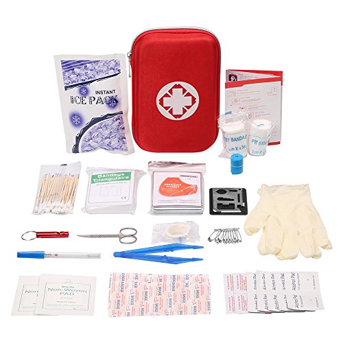 The best value most comprehensive emergency aid kit--It contains essential medical supplies that are most often needed in case of emergency,includes stainless steel scissors,thermometer,injury treatments and more items.