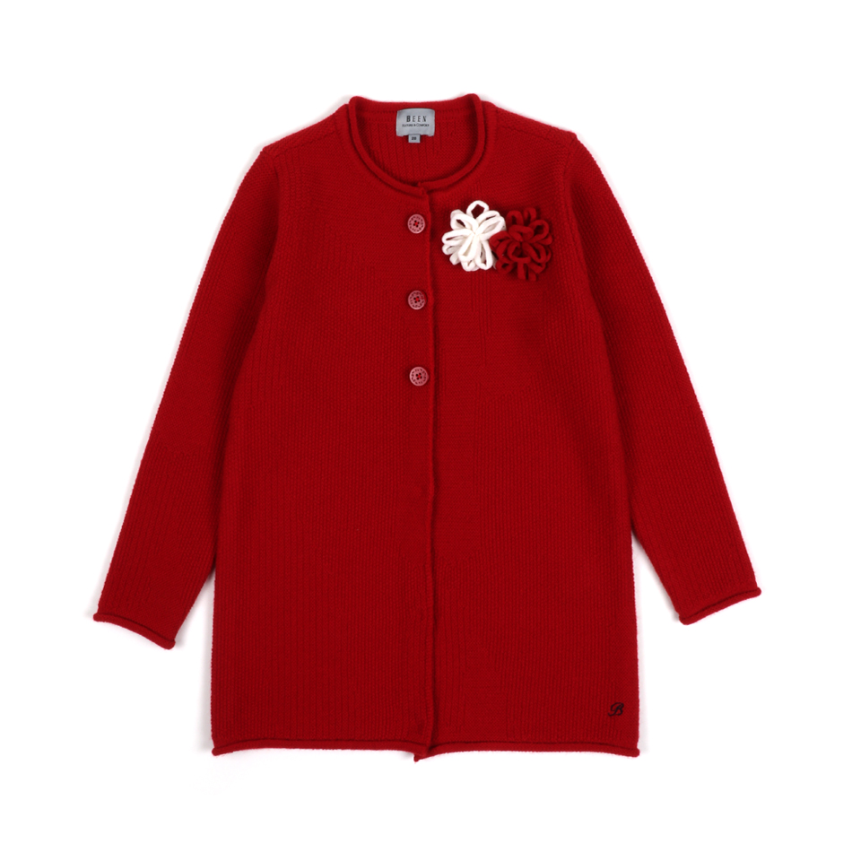브릭레드 컬러가 세련된 타운 가디건 아이템입니다. A 라인으로 떨어지는 라인감이 세련되었으며 레깅스와 함께 코디시 편안하면서도 시크한 여아 느낌을 보여주는 활용도 높은 가디건 아이템입니다. 화이트와 레드 컬러 믹스의 코사지로 포인트를 주었습니다. | ||||||||