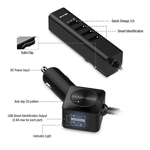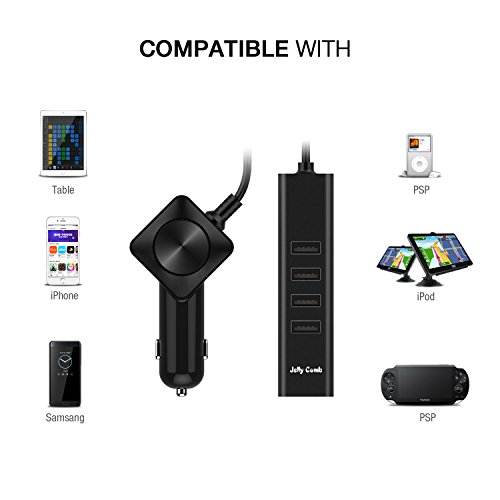 【Smart Car Charger】The exclusive Jelly Comb smart identification technology recognizes your device and distribute the maximum charging current possible. Support charging 6 devices simultaneously.