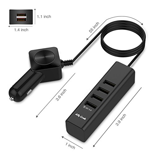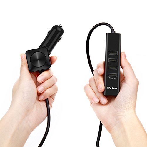 Car Charger, Jelly Comb Aluminium Quick Charger 3.0 6-port USB Smart Car Phone Charger Adapter W Clip for Multiple Backseat Charging for Samsung Galaxy S8 S7, iPhone 7, iPad, LG, HTC, Nexus and More