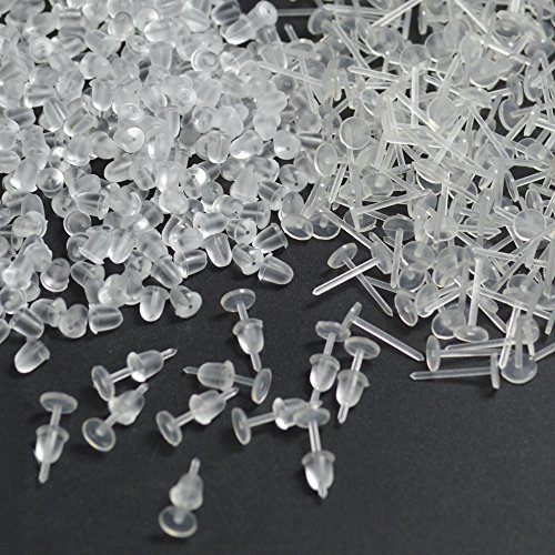 BoNaYuanDa Pack of 1000 Plastic Flat Pad 5mm Earring Studs and Rubber Earring Safety Backs