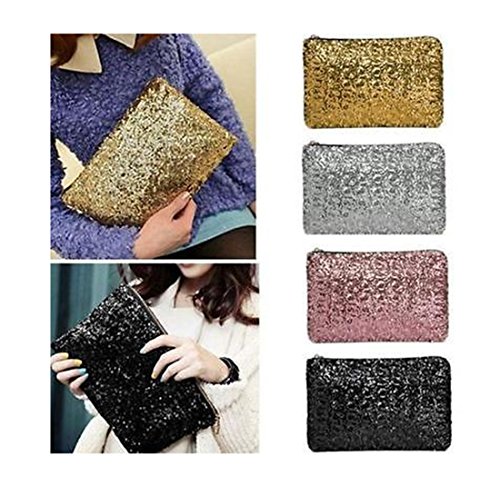 Women Dazzling Sequins Zipper Clutch Handbag Cosmetic Bag