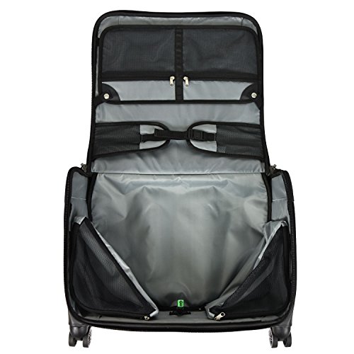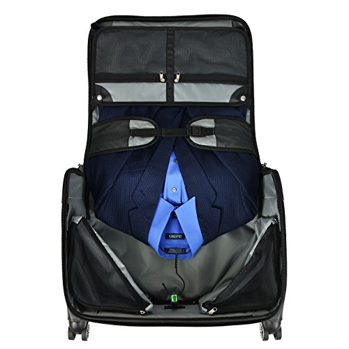 Studio : Travelers Choice Publisher : Travelers Choice Binding : Apparel Product Description Pack your clothing inside this carry-on spinner garment bag from U.S. Traveler. Designed to hold 3 to 4 suits and essentials for a personal or professional trip, the carry-on garment bag is compact enough to fit in the overhead compartment of most us domestic airlines. The 4-stage aluminum adjustable self-locking handle system allows you to adjust the handle height for easy rolling. The top carry handle is strong and durable. The multi-directional spinner wheels are smooth and quiet. 0