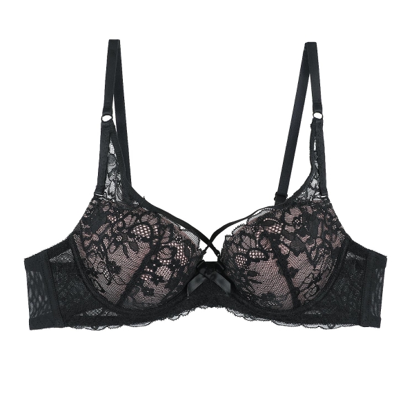 스킨 컬러와 매칭 되는 선명한 블랙 컬러감이 포인트로 3/4컵 몰드에 탈착 가능한 에어 볼륨 쿠션이 들어가 있어 볼륨감을 다양하게 연출.