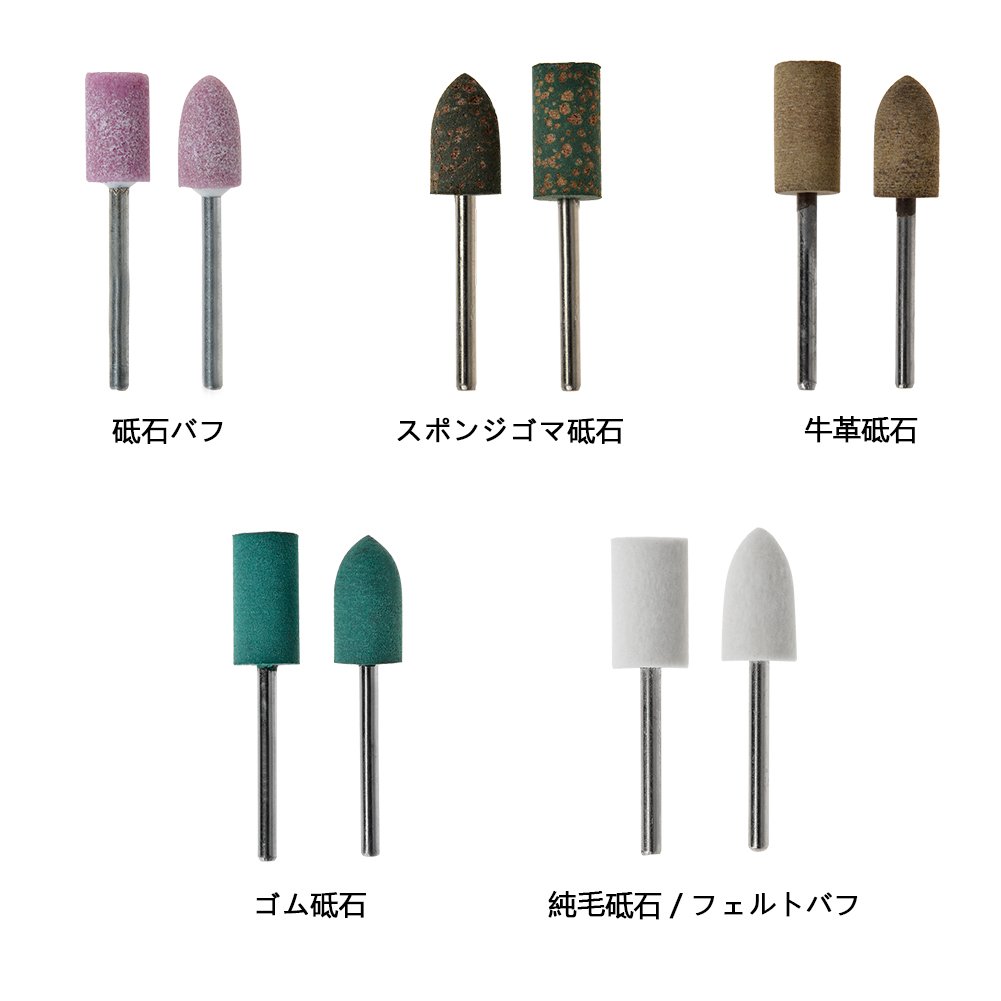 Grain size: grinding stone buff - 80 # / pure buff buff - none / sponge sesame buff -240 # / cowhide buff -180 # / rubber buff -320 #