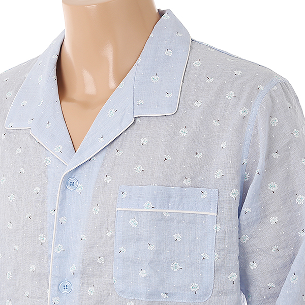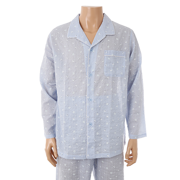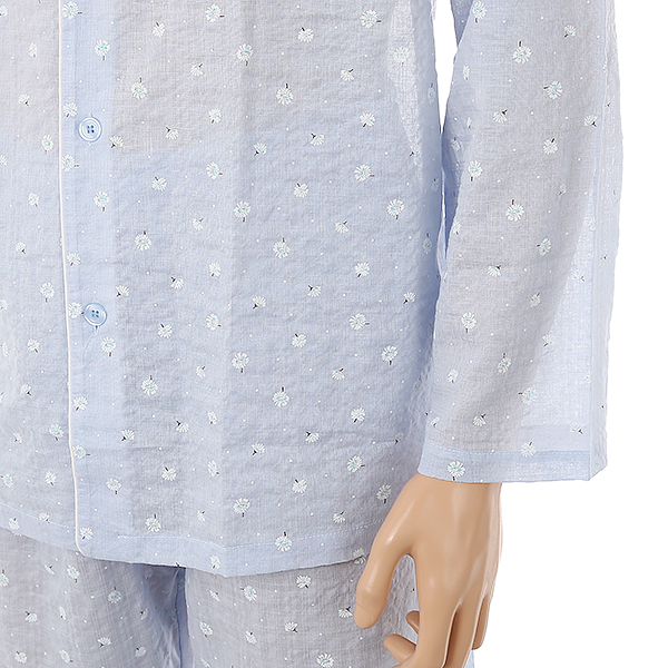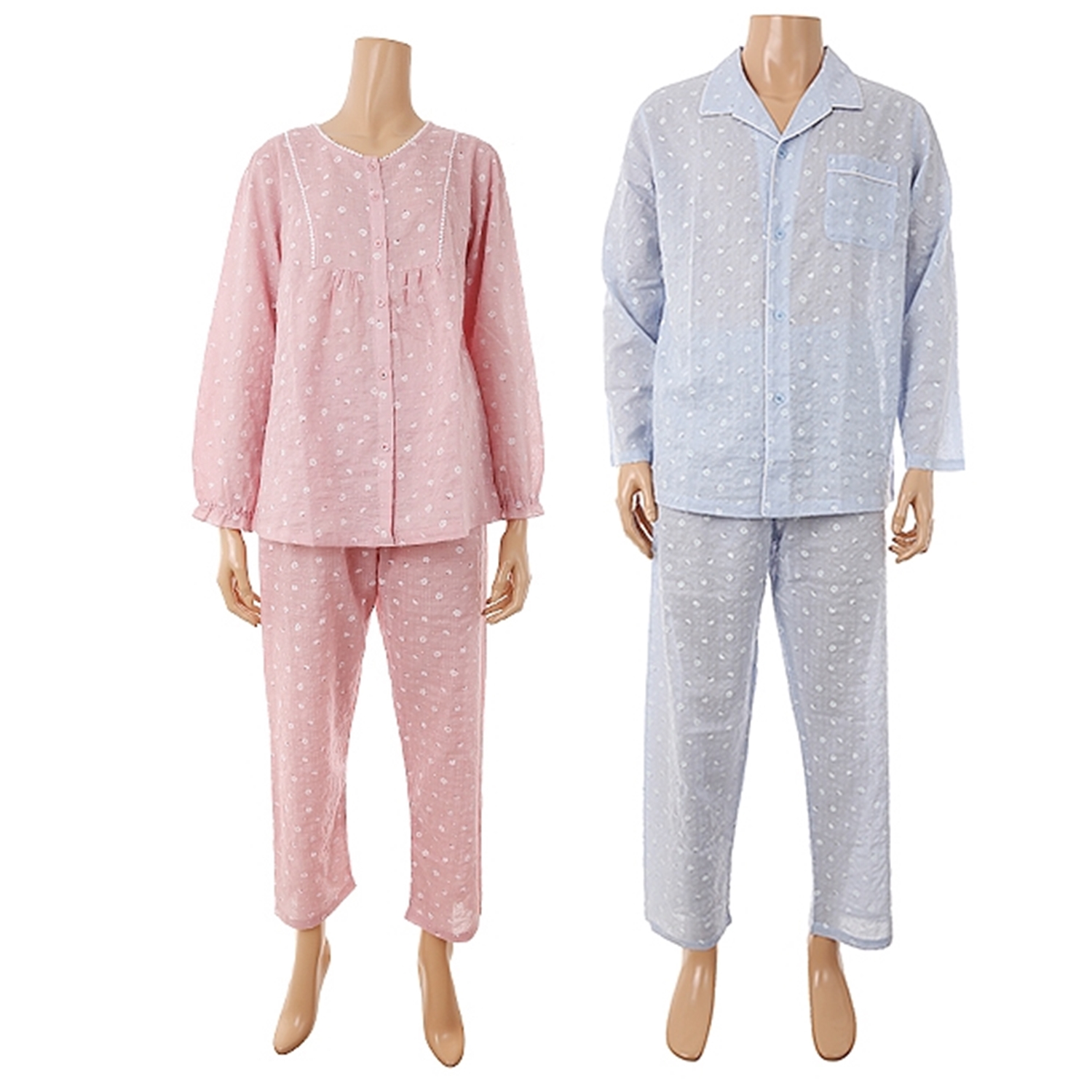연령대와 관계없이 무난하게 착용하기 좋은 은은한 잔꽃나염의 남녀 커플 파자마입니다.