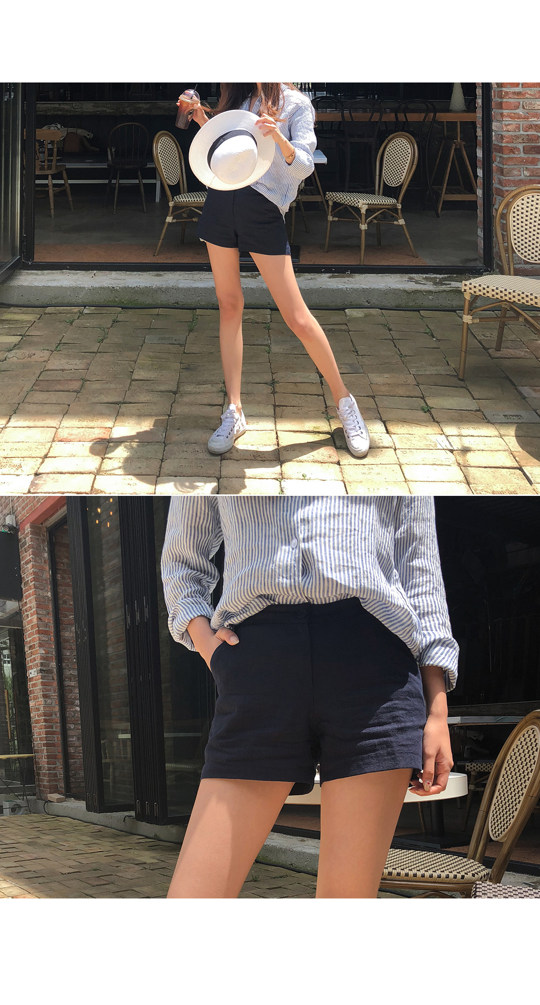 MD COMMENT 데일리하게 입기 좋은 린넨 소재 베이직 팬츠 소개할게요.매년 함께 하기좋은 디자인으로두고두고 활용도 높은 린넨 숏팬츠랍니다 ^^적당한 핏감과 안정감있는 기장으로편안하게 입기좋은 데일리 아이템이랍니다 !살짝 숏한 기장감이 더해 레그라인이 한층길어 보이는 효과를 가져다 주며양사이드에는 포켓을 달아 실용성을 갖춰 주었구요허리 프론트부분에 싸개 버튼으로 클로징을 도와드려요^^안감을 따로 없이 비침걱정없이 즐길 수 있답니다!여름 내내 활용하기좋은 베이직 아이템으로S,M,L 세가지 사이즈로 준비해드릴게요.COLOR/SIZE 네이비,아이보리,베이지,핑크S,M,LMODEL FITTING 네이비/S